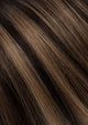 Dark Brown/Chestnut Brown #2/6 - Balayage: this extension is in the mid-range, starting with a deep off-black/brown base, subtly transitioning into a light golden-brown with hints of orange tones. She’ll leave ‘em guessing and impressing. / 18